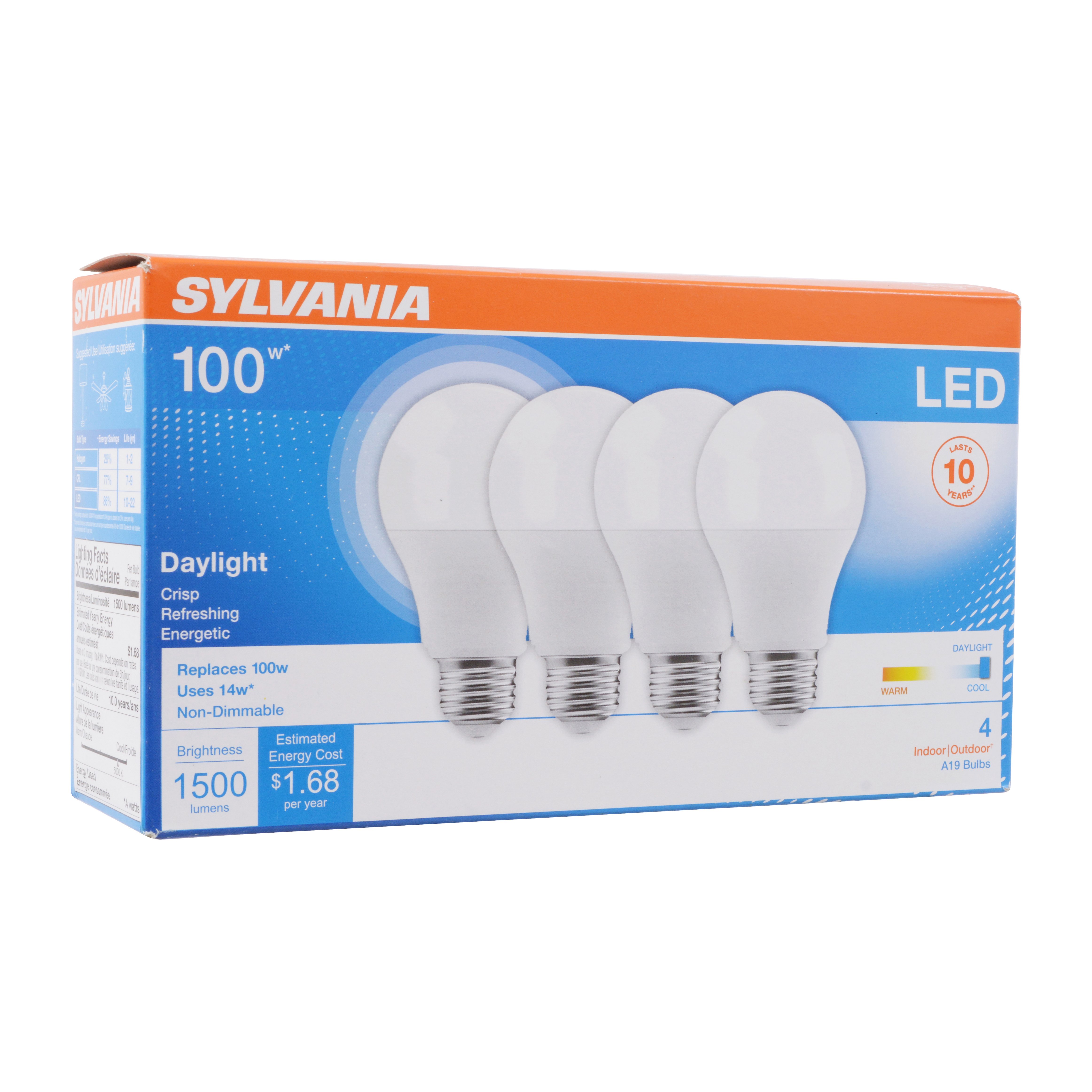 Ecosmart 100 watt equivalent a19 non dimmable cec led light bulb daylight 4 pack. A19 led light bulbs 100 watt equivalent led bulbs 4000k daylight white 1100lumens non dimmable medium screw base e26 cri85 12 pack. Sylvania a19 led light bulb at menards.