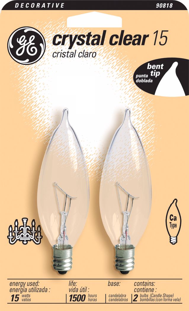 Our bp15t6 2 130 hdrp bulb replaces traditional affordable incandescent technology that produces 2700k soft white glow while using only 15 watt. Find candelabra base e 12 incandescent light bulbs at lowe s today. These bullet or flamed shaped bulbs are decorative and used as a secondary lighting source in the home.