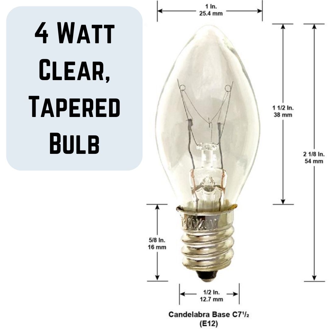 7 watt night light replacement bulbs 3 ct packs. 7 watt incandescent c7 night light bulb 4 pack 7c7 cl 220v 7 watt c7 e12 base watt clear c7 bulb candelabra e12 base 220 volt. Galesburg electric industrial supply inc.