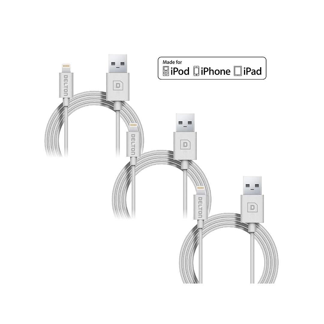 Lightning charger cable nurbenn 4 pack 3ft 6ft 6ft 10ft nylon braided usb a to lightning compatible cable iphone x 8 plus black white. Delton lightning usb cable for iphone ipad ipod touch white pack of 3 ce14541a. Apple mfi certified lightning cables.