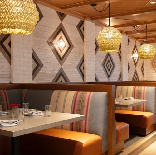 Boho wood and natural beaded vintage. Sayer 1 light single geometric pendant. Boho natural reed pendant lighting.