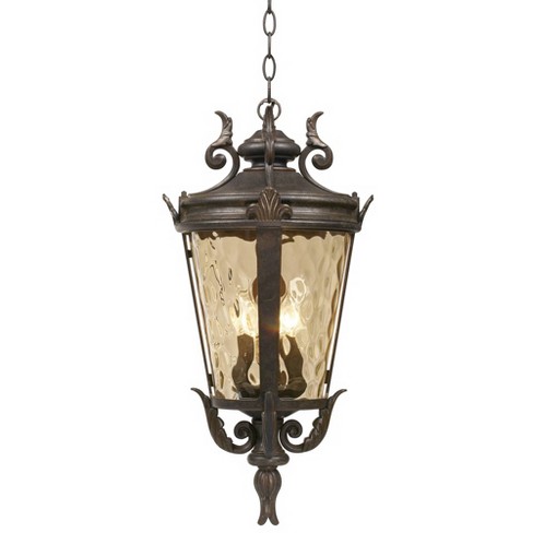 John timberland mediterranean outdoor ceiling light hanging bronze scroll 23 3 4 champagne hammered glass damp rated for patio. This outdoor hanging light holds up in damp outdoor areas so you can bet it s a reliable choice. Industrial mini glass pendant oil rubbed bronze hanging light fixture.