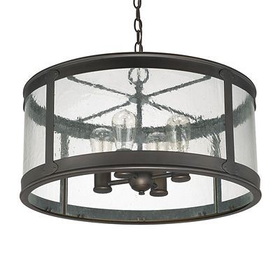 Capital lighting dylan 4 light outdoor full sized pendant. 60 of adjustable chain included. Includes a clear glass shade.