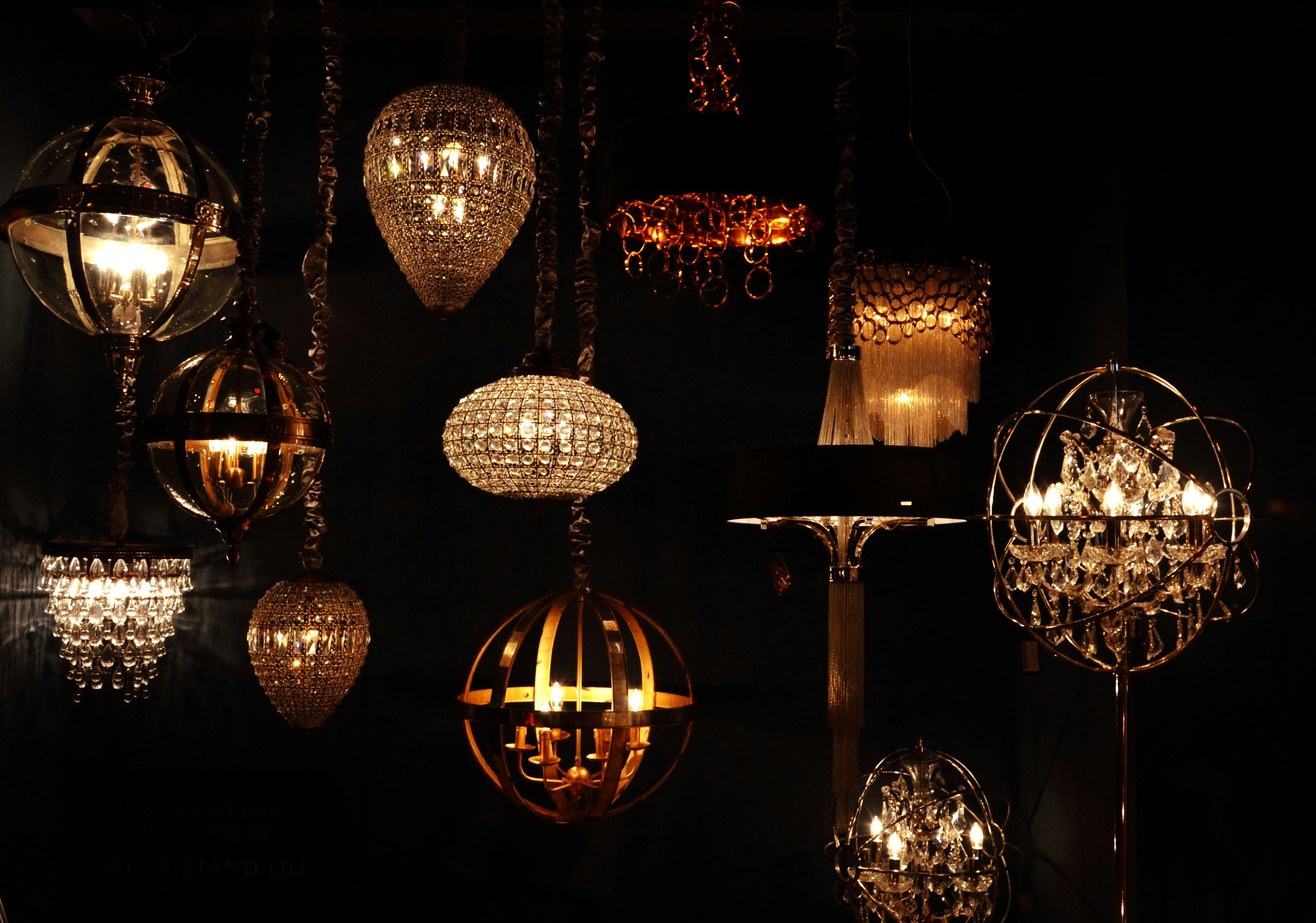 Colored glass pendant lights.
