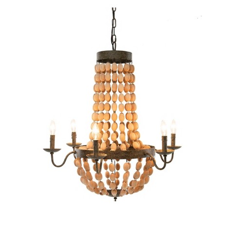 Creative co op metal chandelier with wood beads ceiling lights antique brass and distressed grey. Deal on creative co op lighting bhg. Creative co op metal chandelier with wood beads 6 ceiling lights 30 round by 39 height white.