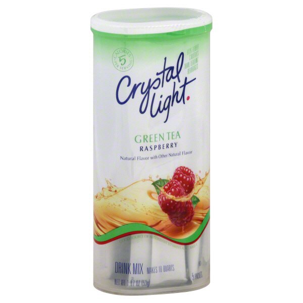 Crystal light green tea peach mango drink mix makes 10 quarts 1 85 ounce canisters pack of 12 buy product. Crystal light raspberry iced tea mix is a sweet alternative to juice and soda and has 90 percent fewer calories than leading beverages this product 10 calories leading beverages 70 calories. Crystal light raspberry green tea powdered drink mix 5ct 1 87 oz.