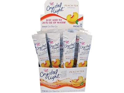 Crystal light on the go peach tea powder 0 09 oz 30 box 00797. Crystal light peach tea drink mix 12 quart 1 5 ounce packages pack of 4. Crystal light peach iced tea powdered drink mix low caffeine 1 5 oz can.