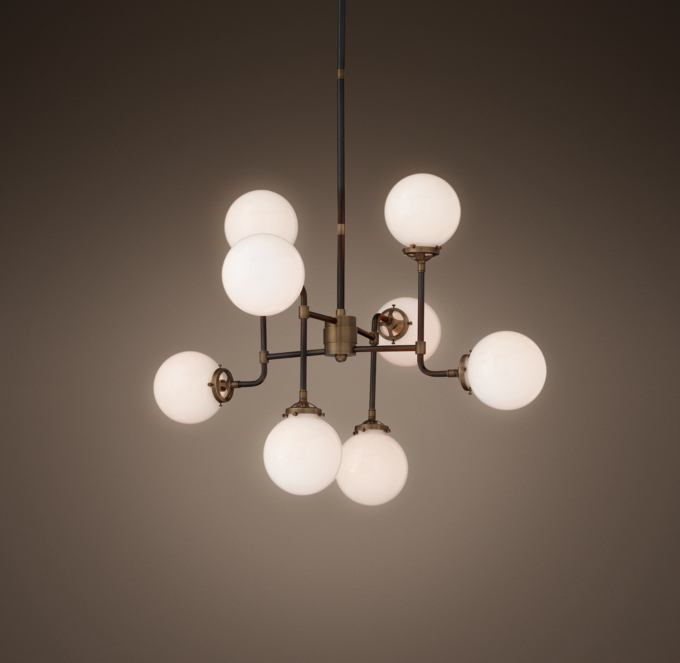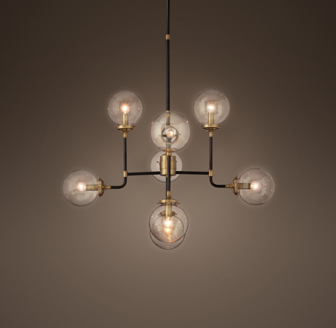 West elm light chandelier brand new midtown west 400. Modern glass globe chandelier. Steel body in dark bronze and antique brass finishes.