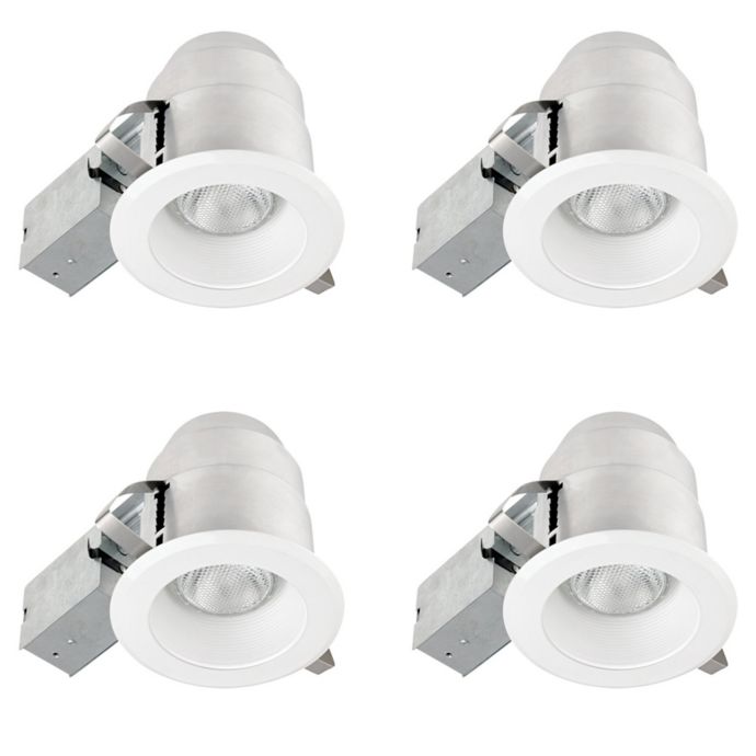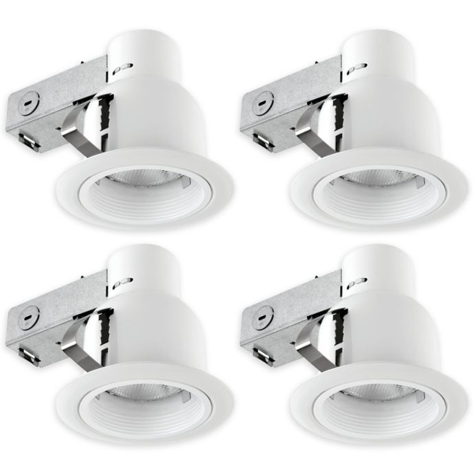 Globe electric 4 in white integrated led recessed lighting kit 4 pack 91337. Featuring patented push n click clips which are fully adjustable and extra wide to grip uneven surfaces and provide easy tool free installation. Halo 4 led series includes light engines designed for use with 4 tl4 series led trims and adjustable gimbals that combine an adjustable gimbal trim and led light engine.