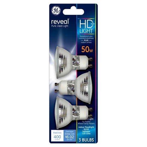 General electric 50w 3pk reveal gu10 halogen light bulb. Ge 50w gu10 halogen 3 pk. 50w e26 dimmable halogen light bulb red.