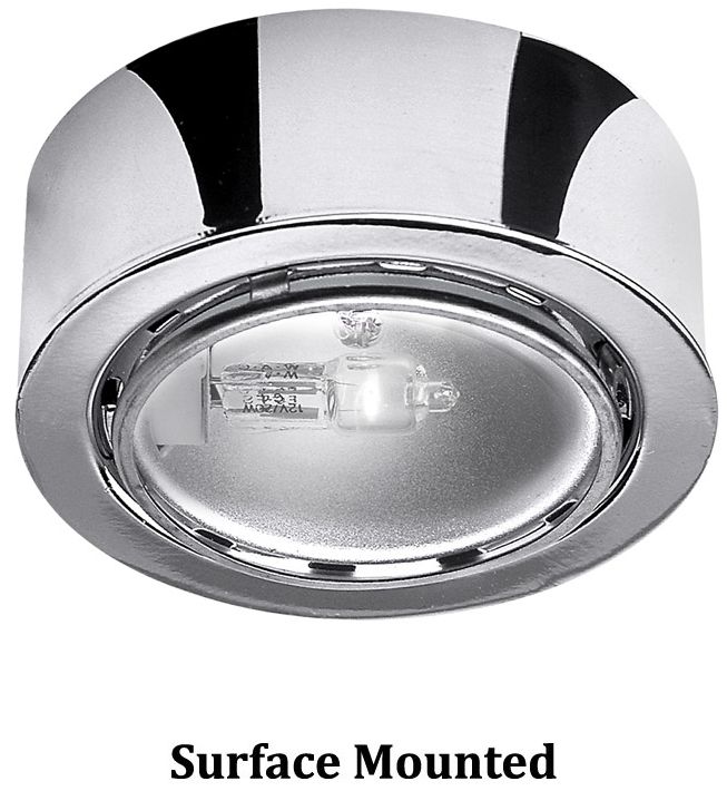 Posted by bill on nov 21st 2019 as advertised 12v dimmable worked as puck replacement for my 30 year old under cabinet lighting system. Free shipping on your first order shipped by amazon. Nicely front finished plated with a aluminum finish.