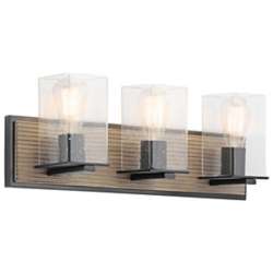 Kichler 37418 3 barrington distressed black and wood bathroom vanity light.