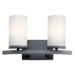 Kichler 45885bk winslow modern black 2 light bathroom vanity light fixture. More buying choices 60 53 23 used new offers kichler 37423 barrington distressed black and wood cylinder vanity light 9 inch. The vanity light comes with satin etched glass diffusers for soft lighting.