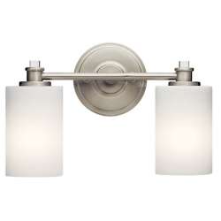 Kichler 45496 crosby 2 light bathroom vanity light brushed nickel. Harmony 3 light brushed nickel vanity light with clear glass the kichler harmony 24 5 in. Browse a wide selection of bathroom vanity lights.