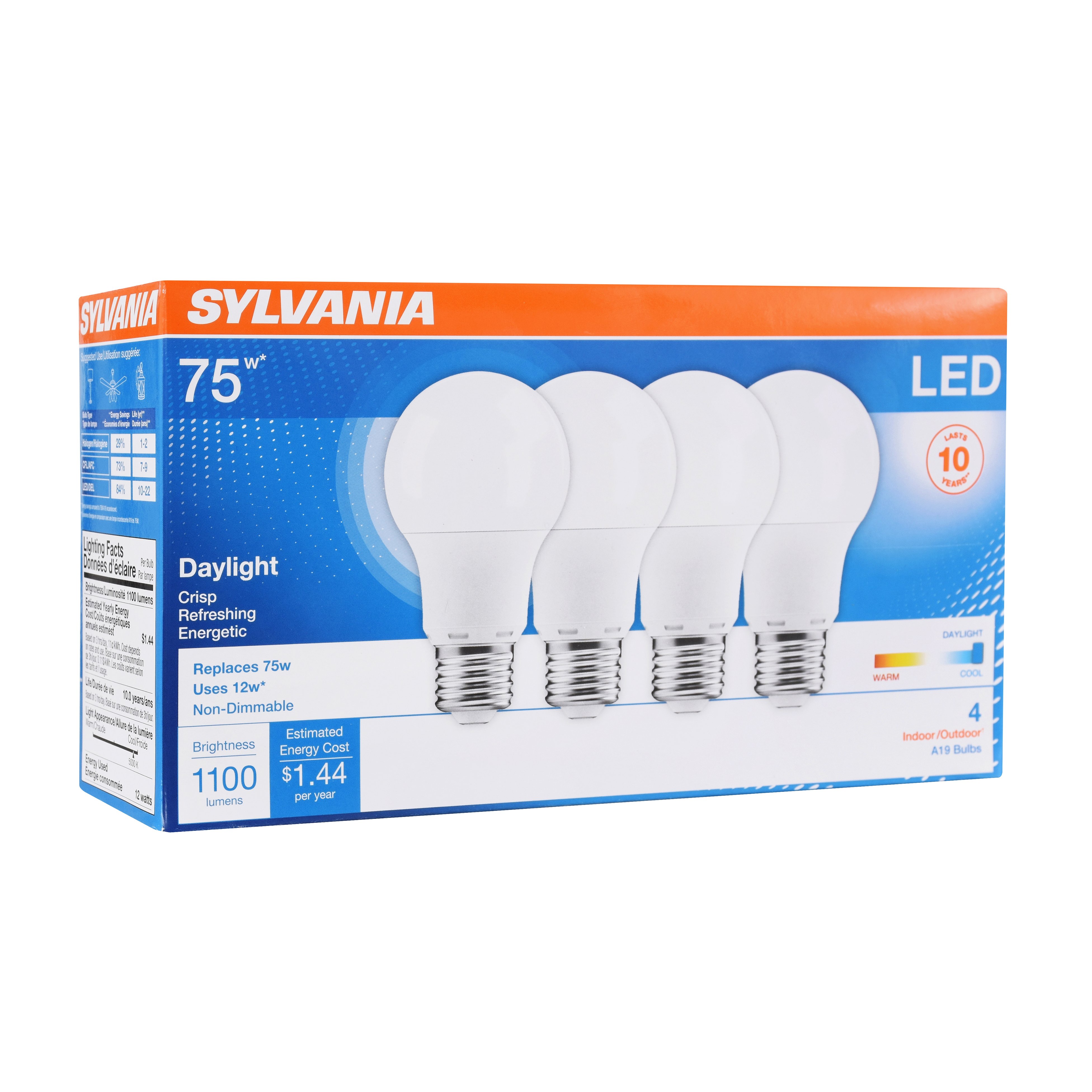 Sylvania 75 watt equivalent led a19 light bulb daylight white. Philips 75 watt equivalent a19 non dimmable energy saving led light bulb daylight 5000k 2 pack 463000 the home depot. Great value led light bulb 13 5w 75w equivalent a19 general purpose lamp e26 medium base non dimmable soft white 4 pack walmart com.