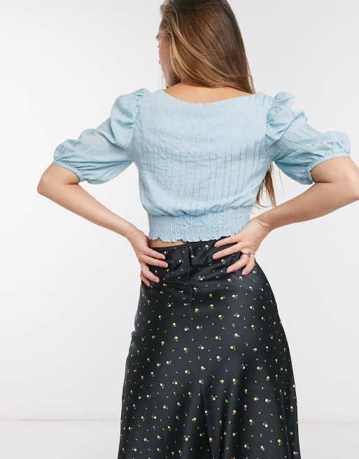Blaue crop tops für einen coolen stylishen look entdecke den angesagten bauchfrei trend crop top für verschiedene anlässe online bei zalando. Aqua womens crop top striped smocked light blue. Ivy main ditsy surplice womens light blue crop top.