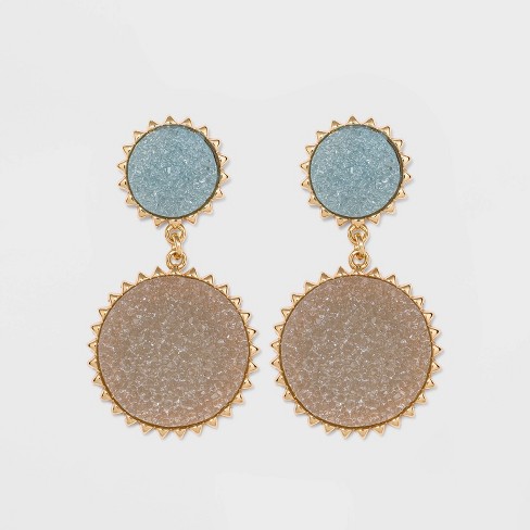 Sugarfix by baublebar two tone druzy drop earrings light blue. Sky blue earrings sterling silver jewelry beatrixbell handcrafted. Light blue oval halo stud earrings with cubic zirconias in rhodium plated brass.