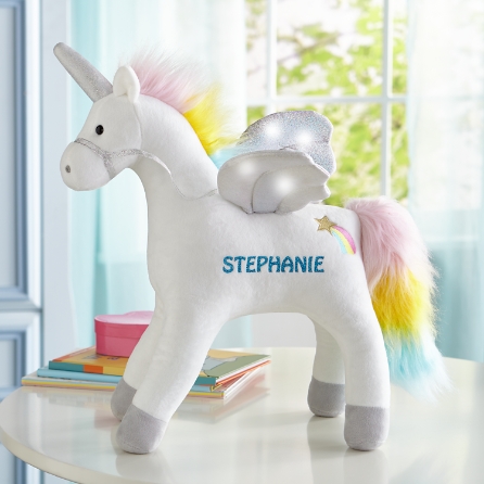My magical sound lights unicorn is a magnificent 17 inch animated plush featuring light up wings and sparkling sounds when you pet the back. Install batteries open the hook and loop on the back of the stuffed unicorn and open the battery box install 3 aaa batteries flip the little black button on the box to on and put the battery box back to the. Light up stuffed unicorn.