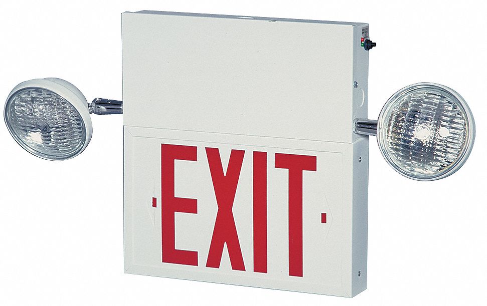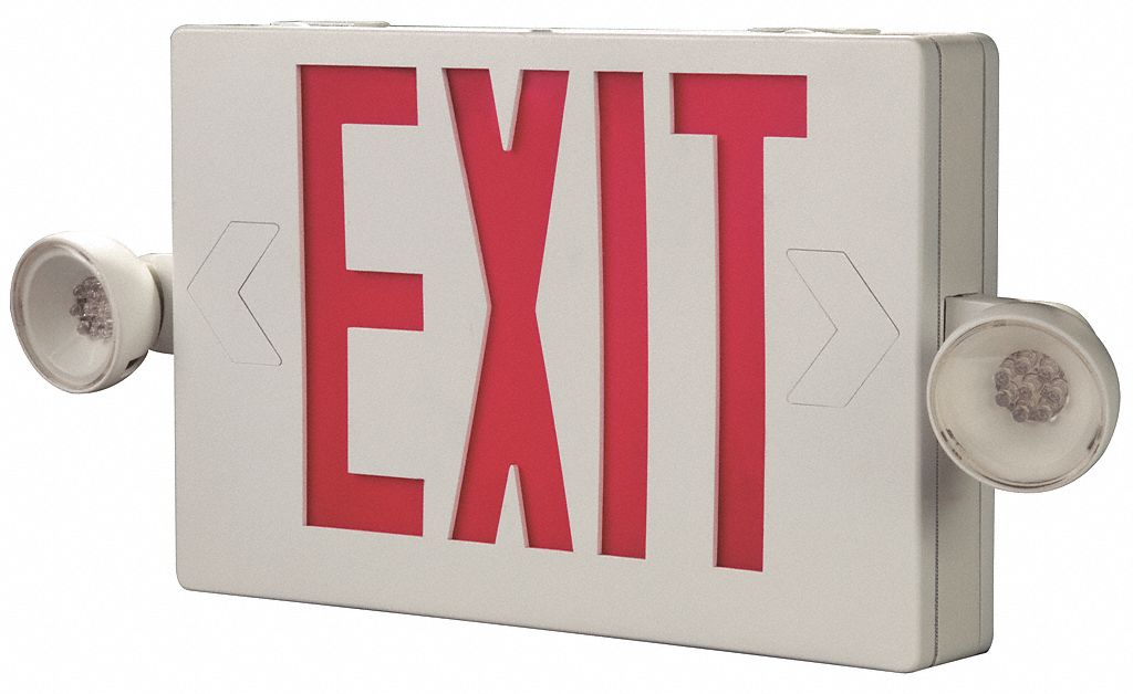 Lavex industrial remote capable red led exit sign emergency light combo with adjustable arrows and ni cad battery backup 4 2 watt unit 2w remote. Standard led exit sign emergency light combo battery backup red letters black housing single double face. Exit sign w emergency lights 3 2w grn.