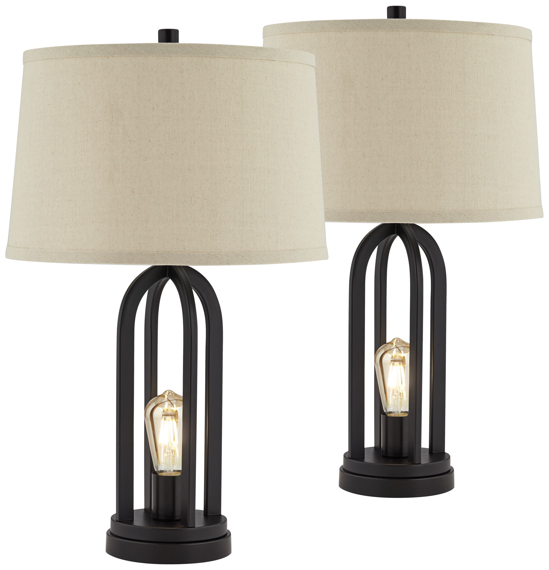 Gaines farmhouse table lamp with nightlight led bronze and wood tone off white burlap tapered drum shade for living room bedroom bedside nightstand. Vintage black farmhouse single light table lamp. Madison oil rubbed bronze metal 60 watt 2 bulb table lamp.