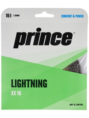 It s a great string for the average player who wants a little more pop 5 5 male serve and volleyer using wilson hyper carbon pro staff 6 7 extreme strung at 52 pounds cp natural gut 16 17. Although it plays a little firmer than a multifilament string lightning xx is quite comfortable. Prince lightning xx tennis racket string with powerfoil 40ft 16 gauge new.