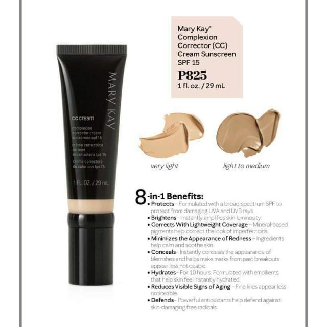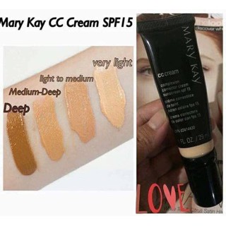This item mary kay cc cream light to medium original version mary kay cc cream sunscreen broad spectrum spf medium to deep. Mary kay cc cream sunscreen spf 15. Protects brightens corrects minimizes the look of redness conceals hydrates reduces the visible signs of aging and defends against environmental stressors.