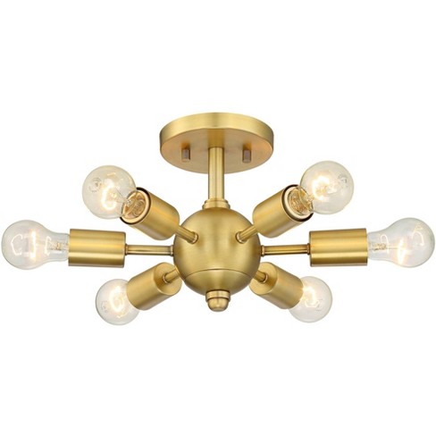 Mid century modern sputnik ceiling light metallic 6 8 10 lights gold semi flush lighting. Nikko 16 in w gold mid century modern semi flush mount ceiling light 16 in w x 9 5 in h x 16 in d. Hunter allison 52 in modern brass led indoor ceiling fan with light kit and remote 3 blade item 2366457.