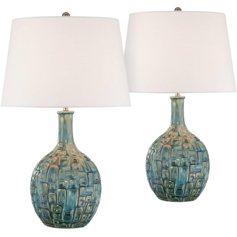 The most popular color. 360 lighting mid century modern table lamps set of 2 ceramic teal glaze handcrafted white empire shade for living room bedroom. Mid century modern lighting designer.