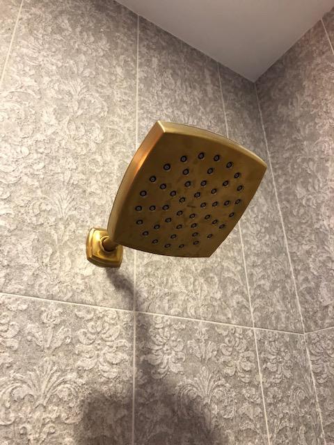 Algor plumbing and heating supply. Voss brushed gold moentrol shower only. Voss brushed nickel bath light.