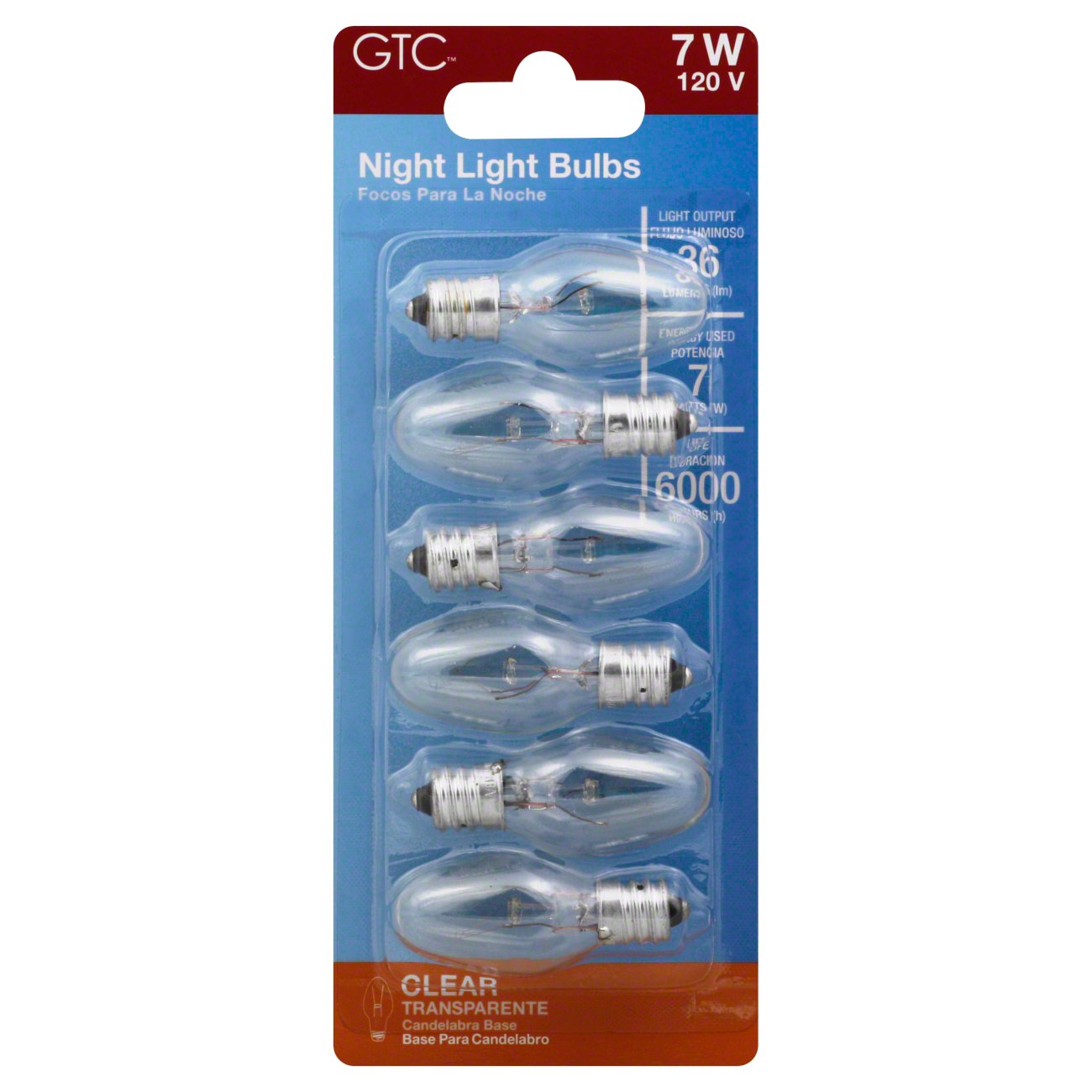 Ideal for homes shelters cabins campgrounds and rec centers. Durable and long life tested these nightlights provide added comfort and security anywhere in your home. Gtc 7 watt clear candelabra base night light bulbs.