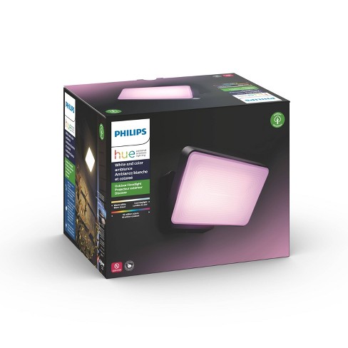 The hue white ambiance sits between the hue white and color bulb and the hue white bulb. Philips hue white and color ambiance discover outdoor floodlight black. This philips hue light possesses a led light source which illuminates a large portion of your garden.