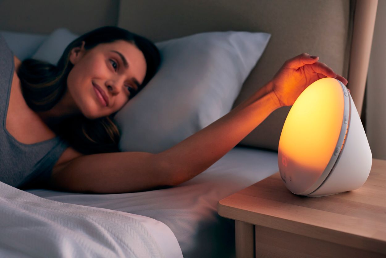 Philips smartsleep sleep and wake up light simulated sunrise and sunset multiple lights and sounds relaxbreathe to sleep hf3650 60.