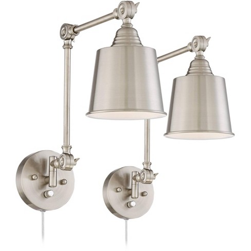 360 lighting modern wall lamps plug in set of 2 brushed nickel for bedroom living room reading walmart com. This display light is made from premium quality material which adds to its elegance and beauty. Of course traditional picture lights are always an option with plug in options featuring broader shades and more traditional finishes of bronze brass mahogany bronze and gold.