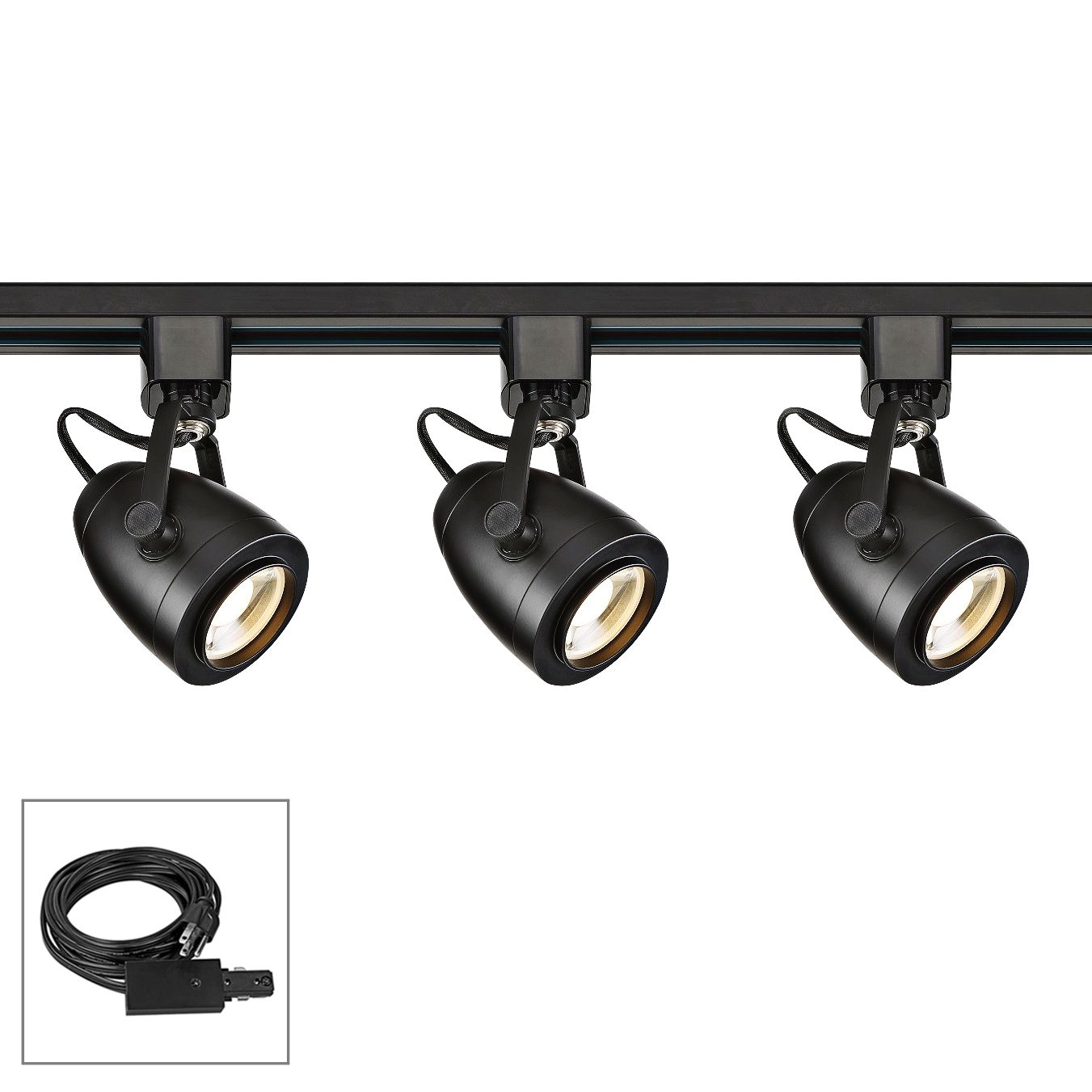 Nuvo lighting 3 light black angle arm led plug in track kit 193 95. Lithonia lighting ostrich egg 44 5 inch 3 light black led track lighting. Kimyan three light track lighting kit plug in brushed nickel with on off switch with mr16gu10 led bulbs warm white cri90.