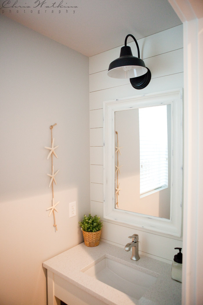Powder room lighting. If extra lighting is needed in other parts of the room led recessed lighting offers an energy efficient focused option. We re here to help. Barn wall sconce lends farmhouse look.
