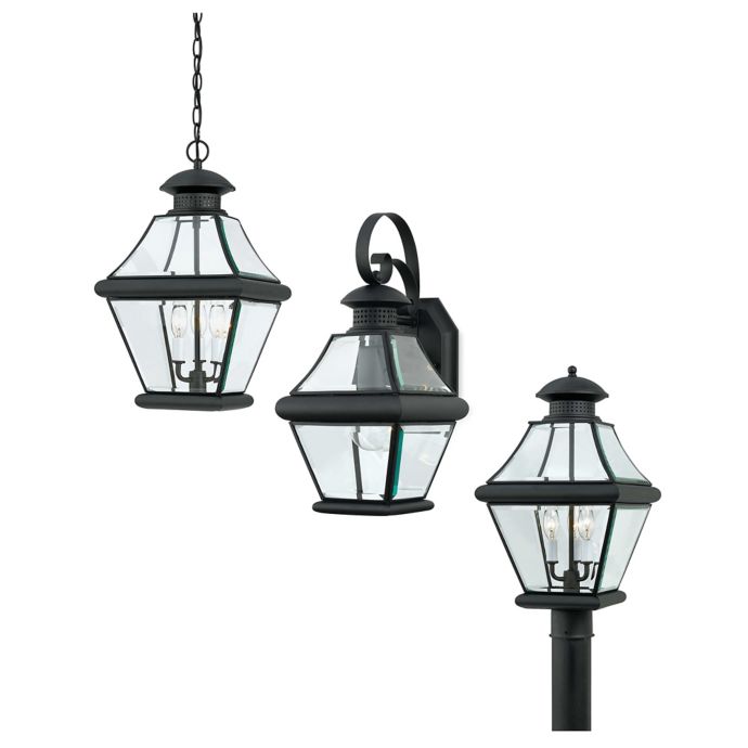 Quoizel ny8317k newbury 2 light 20 inch mystic black outdoor wall lantern. Quoizel newbury 3 light 13 wide outdoor pendant lantern with clear glass. Quoizel carriage 15 high mottled black outdoor wall light.