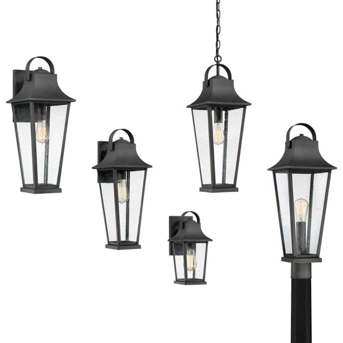 Quoizel hillcrest 12 3 4 high bronze outdoor wall light. Quoizel lighting cse1910ek crusade 150w 1 light outdoor large hanging lantern earth black finish with clear seedy glass 5 0 out of 5 stars 1 169 99 169 99 get it as soon as fri apr 24. Quoizel rj8414k rutledge outdoor wall lantern wall mount lighting 4 light 240 watts mystic black 29 h x 14 w.