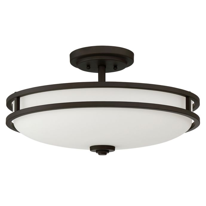 Hampton bay 15 in 2 light oil rubbed bronze semi flush mount with tea stained glass shade s351ju02 the home depot. Wexford 3 light dark bronze semi flush mount ceiling light with clear glass. Flush mount ceiling lights are best on ceiling heights of 8 feet or less when they re in trafficked areas.