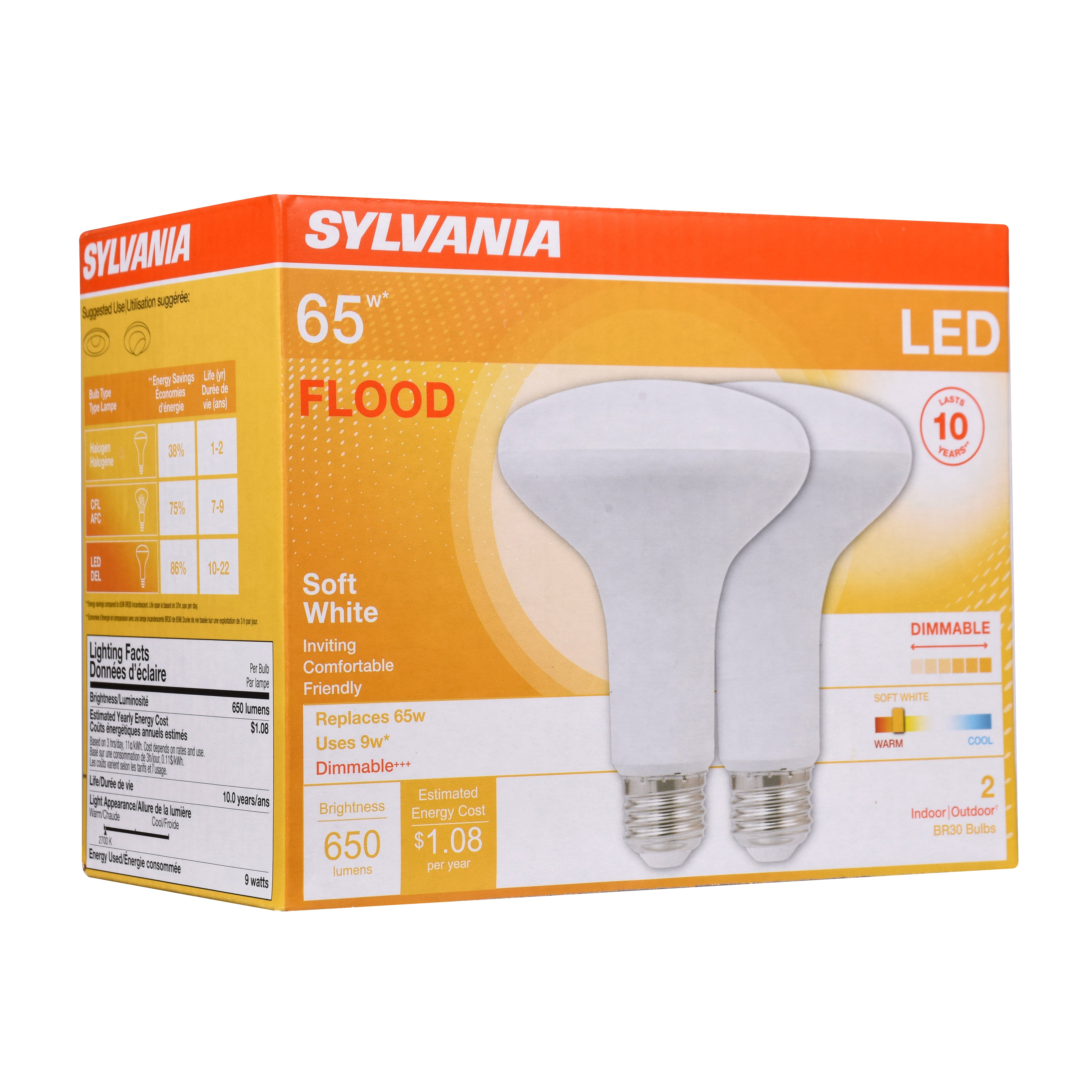 65 watt incandescent br30 flood light bulb soft white 2700k 12 pack. 2 pack sylvania 65 watt br 40 flood light. Sylvania 65w br30 flood light bulbs soft white 4 count.