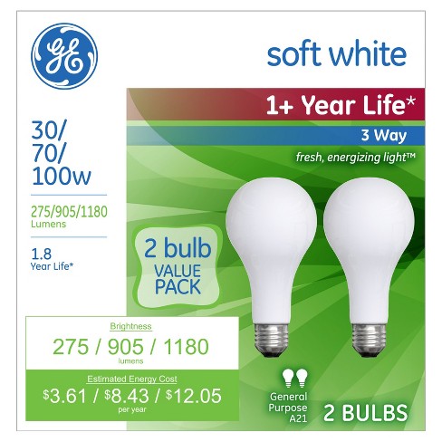 General electric 2pk 30 70 100w 3 way long life incandescent light bulb white. Details about ecosmart 40 60 100 watt equivalent a19 energy star 3 way led light bulb. A21 incandescent dimmable 3 way light bulb 50w 100w 150w 520 1230 1750 lumens 2700k e26 medium base 120v 4 pack.