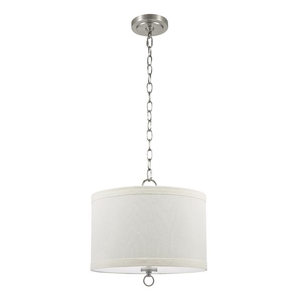 Dainolite brynn white transitional drum pendant light in the pendant lighting department at lowes com. Possini euro design brushed nickel swag pendant chandelier modern crystal off white drum shade 3 light fixture dining room house. Drum pendant lighting over kitchen island.