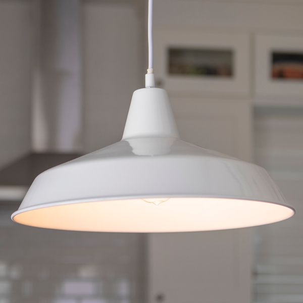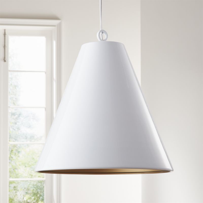 White pendant lighting at lowes com. White enamel farmhouse pendant light. Rodan white metal cone pendant light reviews crate and barrel.